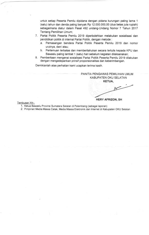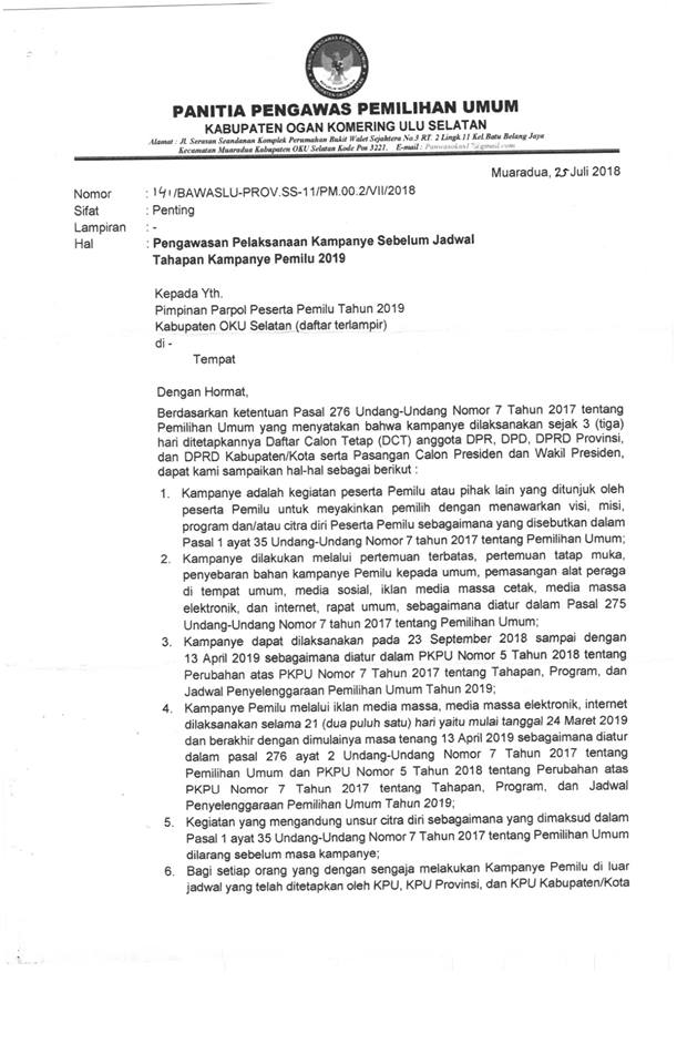 PENGAWASAN PELAKSANAAN KAMPANYE SEBELUM JADWAL TAHAPAN KAMPANYE PEMILU 2019