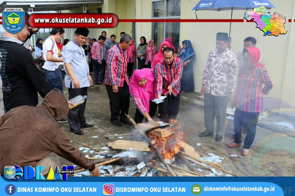 Disaksikan langsung oleh Sekretaris Daerah Kabupaten OKU Selatan H. Romzi,S.E.,M.Si. didampingi Asisten I Bidang Pemerintahan dan Kesejahteraan Rakyat Joni Rafles, AP., M. Si. Pemusnahan Barang Milik Negara Negara ini berjumlah 3.357 Keping KTP-El Rusak atau Invalid.