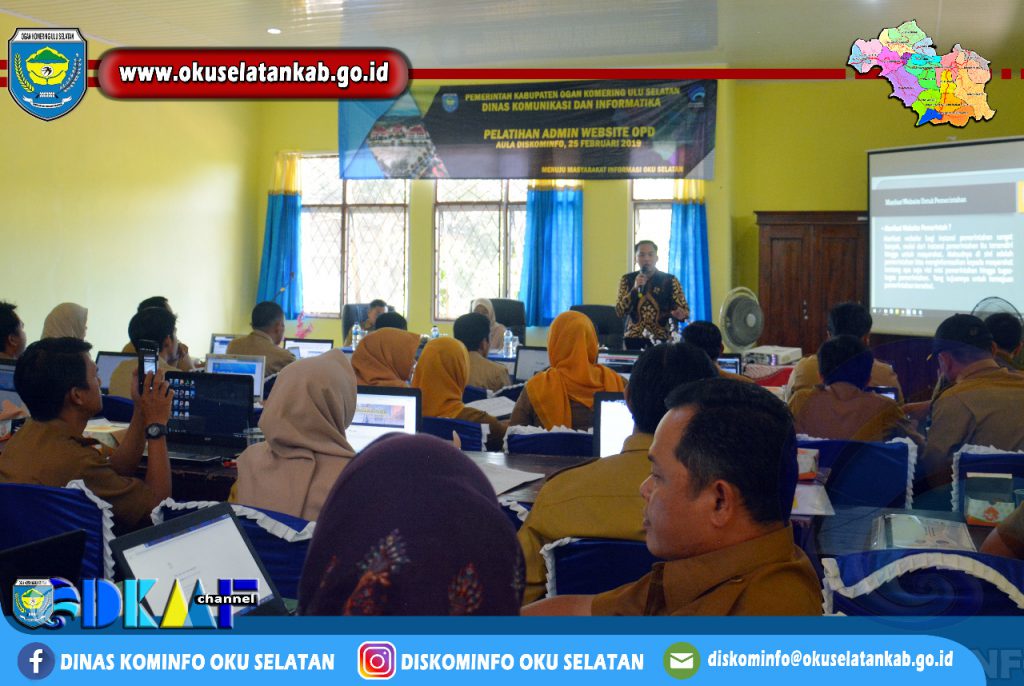 Muaradua (25/02) Pemerintah Kabupaten OKU Selatan melalui Dinas Komunikasi dan Informatika, hari ini menggelar Pelatihan Admin Website Organisasi Perangkat Daerah (OPD) di Lingkungan Pemerintah Kabupaten OKU Selatan (senin/25/02).