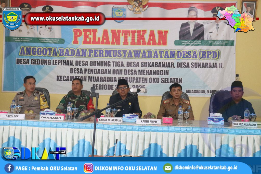 Muaradua (09/04) mewakili Bupati OKU Selatan Camat Muaradua Putra Bani, S. Sos.,M.M, hadir dan melantik secara resmi sebanyak 42 orang anggota Badan Permusyawaratan desa (BPD) dari 6 Desa Kecamatan Muaradua Kabupaten OKU Selatan Selasa (9/4/19).