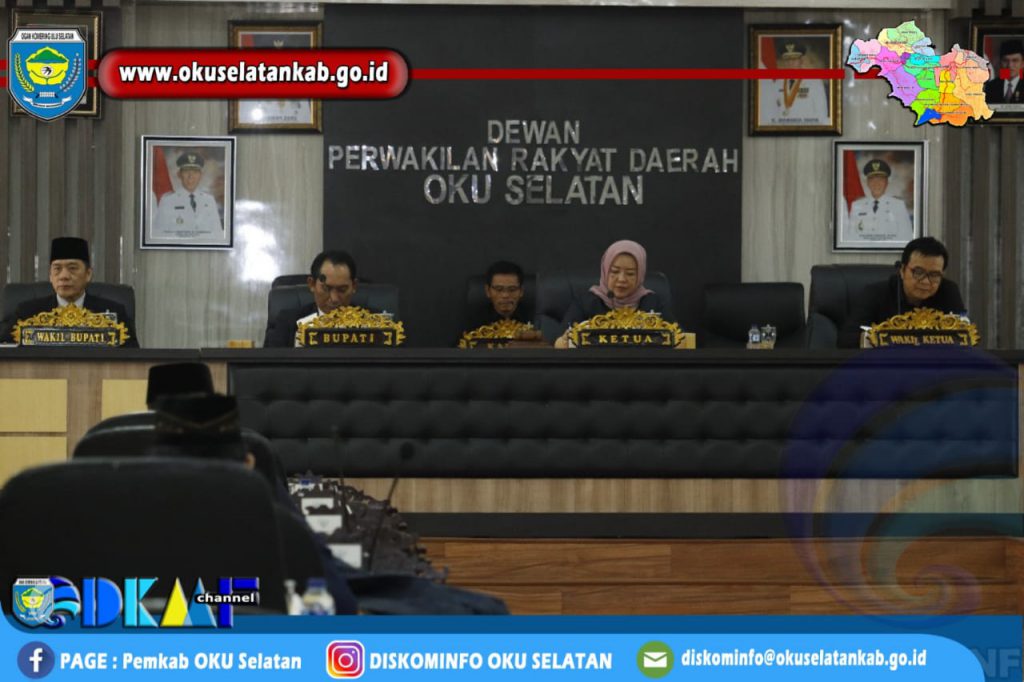 Sidang Paripurna yang digelar di Gedung DPRD Kabupaten OKU Selatan ini yang dipimpin langsung oleh Ketua DPRD Kabupaten OKU Selatan Yohana Yudayanti,S.E, dan dihadiri oleh dihadiri oleh Bupati OKU Selatan Popo Ali M.,B.Com, Wakil Bupati Sholehien Abuasir,SP.,M.Si.