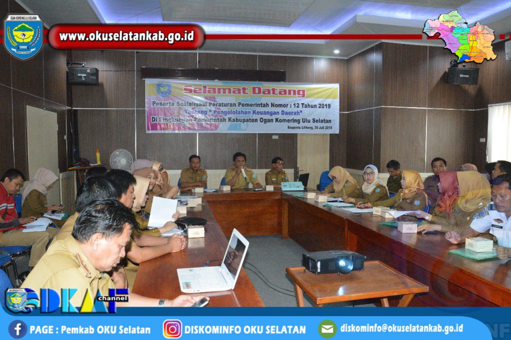 Muaradua (30/07) Badan Perencanaan Pembangunan Daerah Penelitian dan Pengembangan (Bappeda Litbang) menggelar sosialisasi Peraturan Pemerintah (PP) Nomor 12 Tahun 2019 tentang Pengelolaan Keuangan Daerah (PKD), Selasa (30/07).