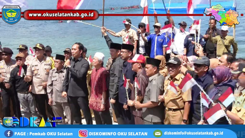 Muaradua (12/08) Bupati OKU Selatan Popo Ali M., B.Com. bersama Wakil Bupati OKU Selatan Sholehien Abuasir,SP.,M.Si. menyaksikan langsung Pembentangan Bendera Merah Putih Ukuran 10 M X 20 M di tengah Danau Ranau, Senin (12/08/2019).