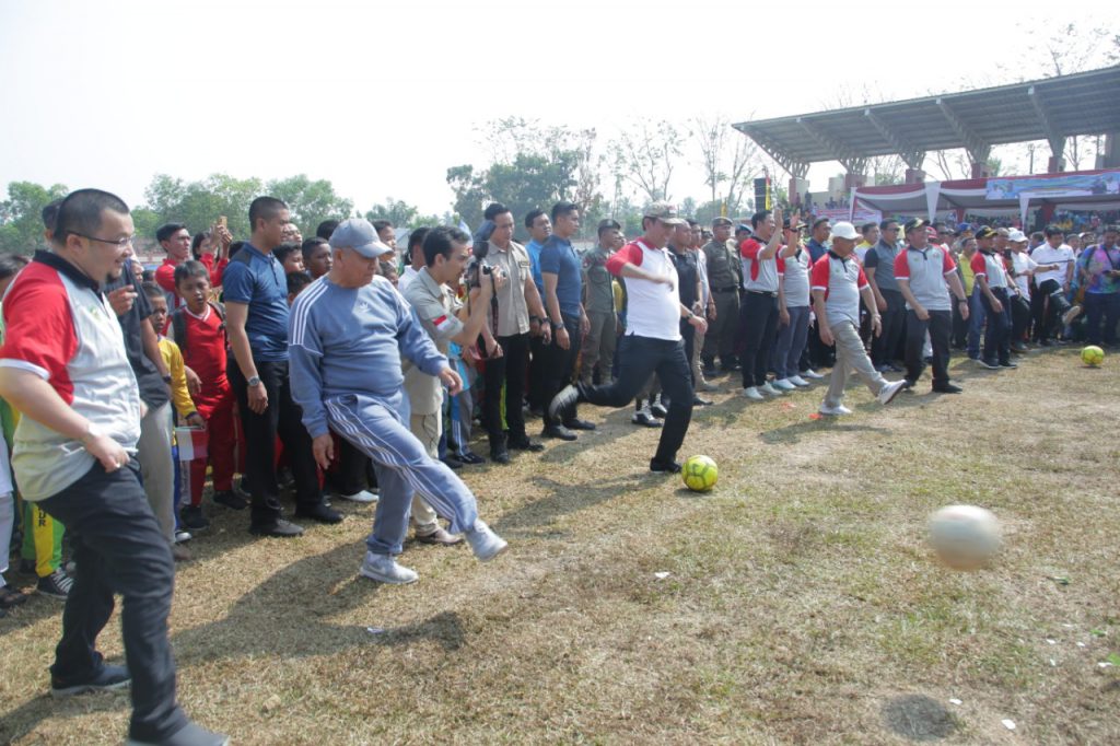 Bupati OKU Selatan dalam kesempatan ini ikut melakukan penendangan bola bersama Gubernur, Bupati OKU, Bupati OKU Timur dan Unsur Forkopimda OKU Timur, sebagai tanda pembukaan Kick Off Piala Gubernur.