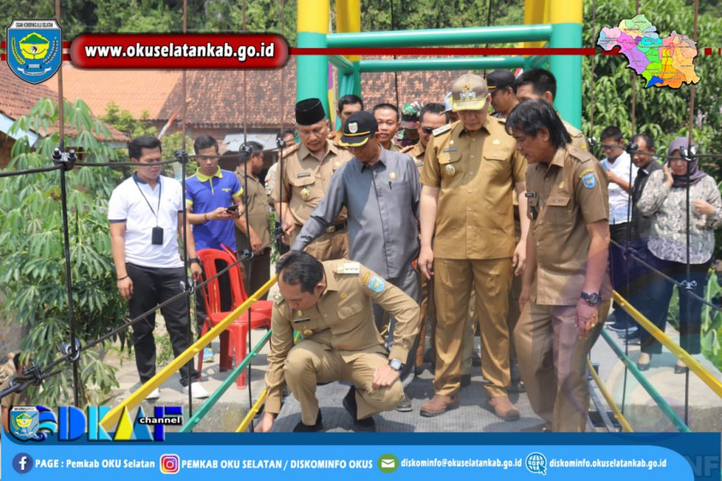 KUNJUNGAN KERJA BUPATI DAN WAKIL BUPATI OKU SELATAN DALAM RANGKA MONITORING PEMBANGUNAN JEMBATAN GANTUNG LAPIS BAJA DI DESA KURIPAN II