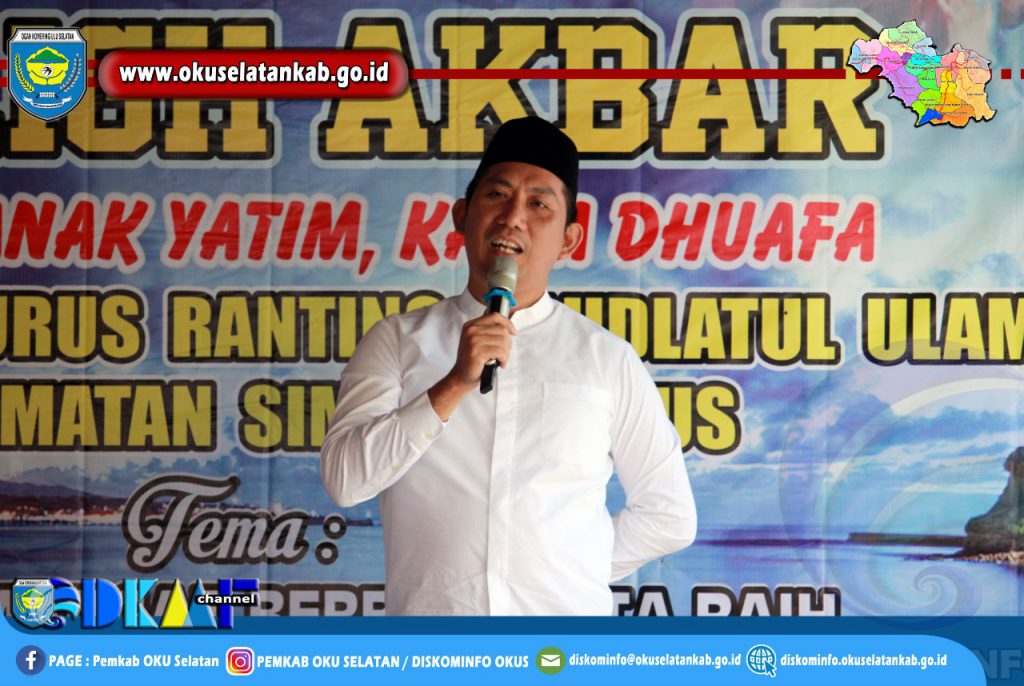 BUPATI DAN WAKIL BUPATI OKU SELATAN HADIRI TABLIGH AKBAR DAN PENYERAHAN SANTUNAN KEPADA 180 ANAK YATIM DAN DUAFA, SEKALIGUS PELANTIKAN PENGURUS RANTING NU DESA DI KECAMATAN SIMPANG