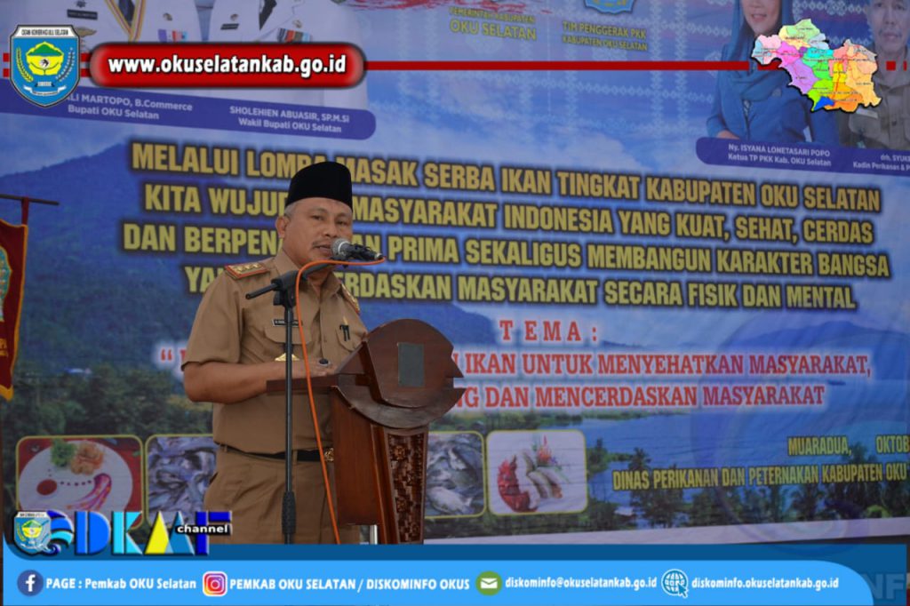 Sementara itu Bupati OKU Selatan dalam sambutannya yang dibacakan oleh Asisten II menyampaikan kegiatan ini sebagai upaya mensosialisasikan program Gemarikan, guna membangun kesadaran gizi, individu maupun kolektif masyarakat untuk gemar mengkonsumsi ikan.