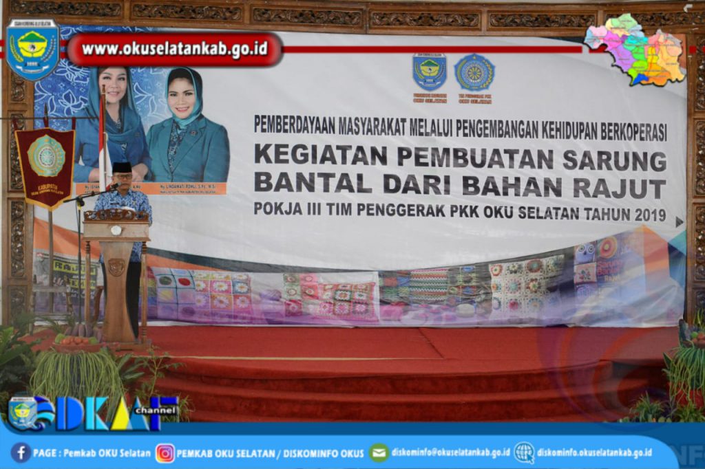 Muaradua (21/10) Bupati OKU Selatan Popo Ali M.,B.Com yang diwakili oleh Asisten I Bidang Pemerintahan dan Kesra hadir dan membuka langsung kegiatan Pembuatan Sarung Bantal dari Bahan Rajut, Senin (21/10/2019).