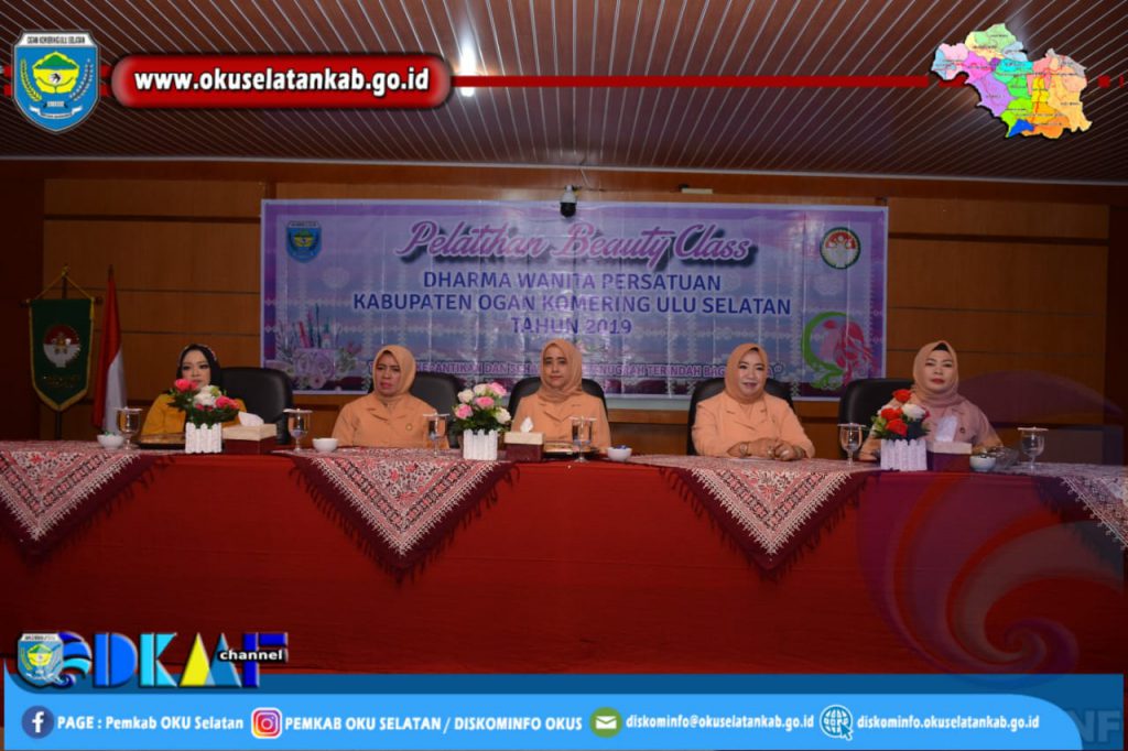 Muaradua (18/11) Dharma Wanita Persatuan (DWP) Kabupaten OKU Selatan menggelar Pelatihan Beauty Class, yang digelar di Aula Pemkab OKU Selatan, Senin (18/11/2019).