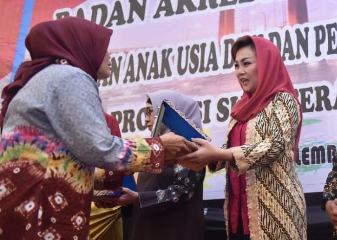 BUNDA PAUD KABUPATEN OKU SELATAN TERIMA PENGHARGAAN DARI BADAN AKREDITASI NASIONAL PAUD DAN PENDIDIKAN NON FORMAL PROVINSI SUMSEL
