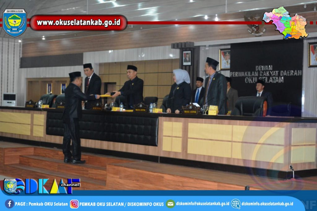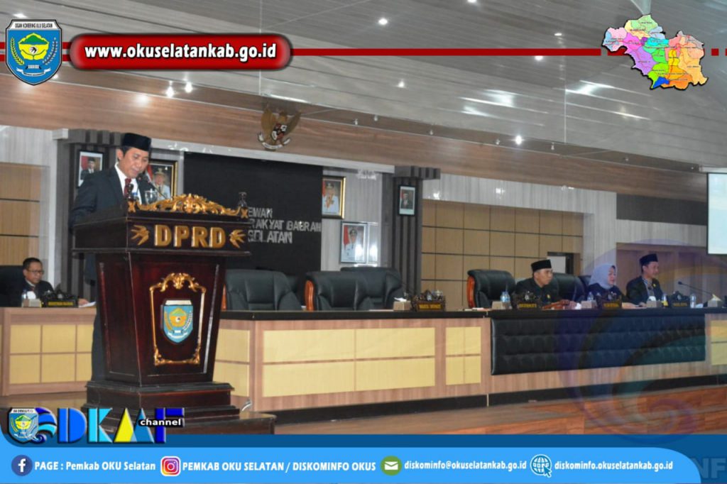 BUPATI OKU SELATAN HADIRI LANGSUNG RAPAT PARIPURNA DALAM RANGKA PEMBAHASAN 3 RANCANGAN PERATURAN DAERAH DAN PENYAMPAIAN LAPORAN RESES MASA PERSIDANGAN PERTAMA TAHUN SIDANG 2019/2020