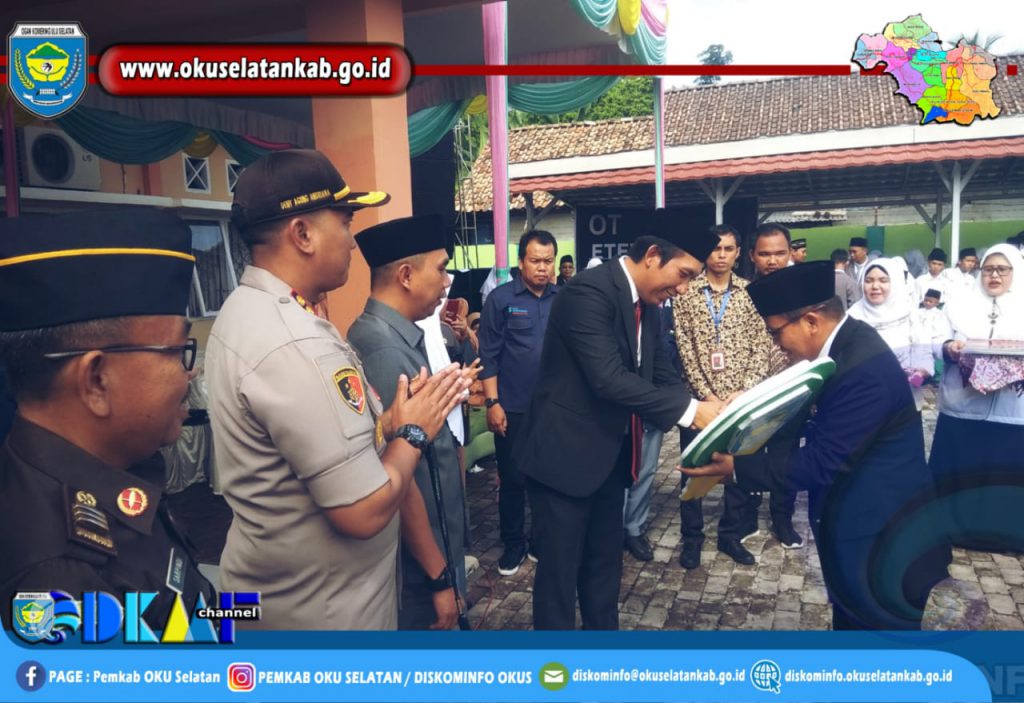 Selesai Bupati OKU Selatan membacakan sambutan Kementrian Agama RI, Pemerintah Kabupaten OKU Selatan Memberikan satu Buah Mobil Dinas dan bantuan satyalencana kepada Kementerian Agama Kabupaten OKU Selatan yang telah diserahkan langsung oleh Bupati OKU Selatan kepada Kepala Kantor Kementerian Agama Kabupaten OKU Selatan H. Syarif, S.Ag., M.Pd.I, Bupati juga menyampaikan Semoga bisa bermanfaat dan harapan beliau semoga kementrian agama Kabupaten OKU Selatan bisa semakin maju dan berkembang.