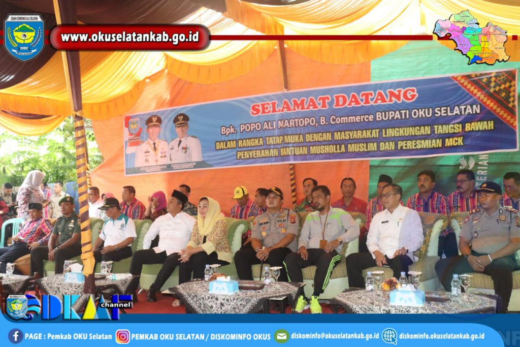TATAP MUKA BERSAMA MASYARAKAT LINGKUNGAN TANGSI BAWAH, BUPATI OKU SELATAN RESMIKAN MCK UMUM DAN BERIKAN BANTUAN UANG TUNAI UNTUK MUSHOLLA MUSLIM