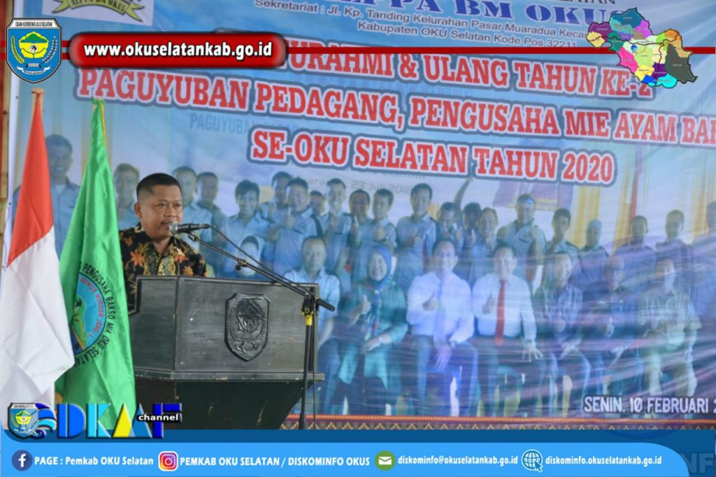 BUPATI OKU SELATAN HADIRI ACARA SILATURAHMI PERINGATAN KE-DUA TAHUN PAGUYUBAN PEDAGANG BAKSO DAN MIE AYAM KABUPATEN OKU SELATAN