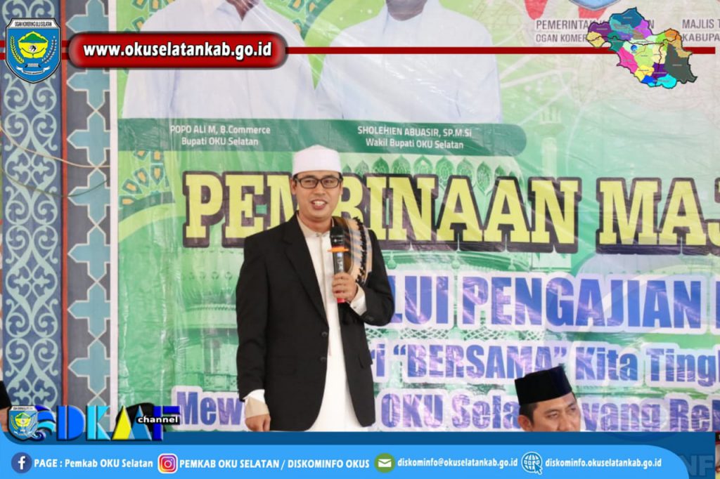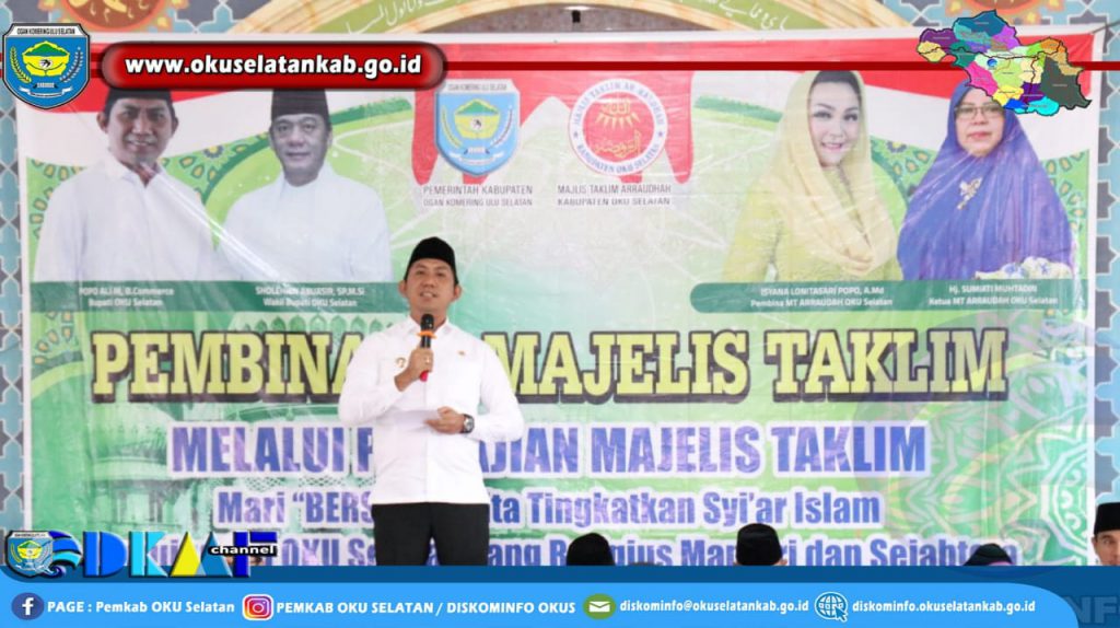 Bupati juga menyampaikan tugas Majelis Taklim bukan sekedar berkumpul tapi menjadi contoh hal yang positif, danTujuan umum suatu majlis taklim adalah membina dan mengembangkan hubungan yang santun dan serasi antara manusia dengan Allah, sesama manusia, dan lingkungannya dalam membina masyarakat yang bertaqwa kepada Allah SWT,” saya harap Kegiatan seperti inilah yang harus di pertahkan dan dikembangkan lagi demi kemajuan Masyarakat yang ada Kabupaten OKU Selatan,” ujar Bupati.
