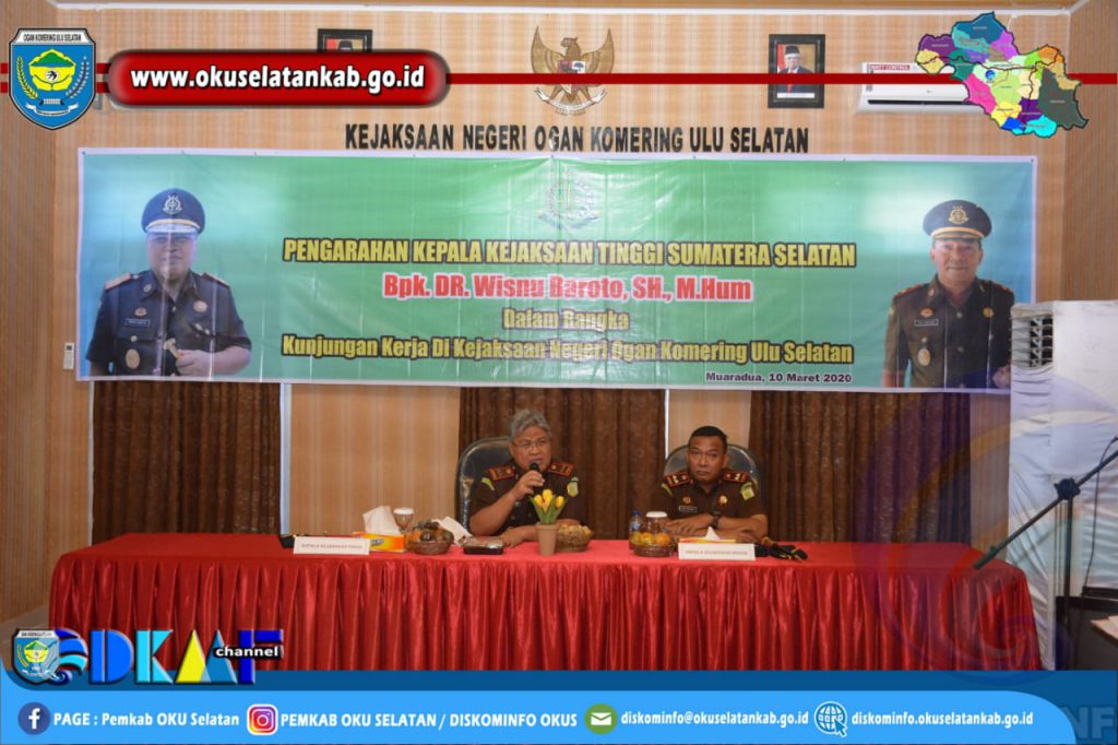 Bertempat di Aula Kejaksaan Negeri OKU Selatan, Kepala Kejaksaan Tinggi Sumatera Selatan menjelaskan bahwa maksud dan tujuan utama dari kedatangannya yaitu untuk mengecek persiapan Kejari OKU Selatan dalam rangka persiapan Pembangunan Zona Integritas menuju Wilayah Bebas dari Korupsi (WBK) dan Wilayah Birokrasi Bersih dan Melayani (WBBM). Kajati Sumatera Selatan juga mengungkapkan bahwa Maret ini pihaknya telah melakukan penilaian. Untuk Kejaksaan OKU Selatan sendiri setelah ditemani oleh Kejari OKU Selatan bersama jajaran saat meninjau langsung setiap sudut ruangan Kejaksaan Negeri OKU Selatan, hasilnya ternyata diluar dugaan. “Saya merasa surprise dan sangat mengapresiasi Kejaksaan Negeri OKU Selatan, ternyata sudah bagus sekali, salut dan mengucapkan terima kasih untuk seluruh jajaran Kejaksaan Negeri OKU Selatan,” ungkap Kejati.