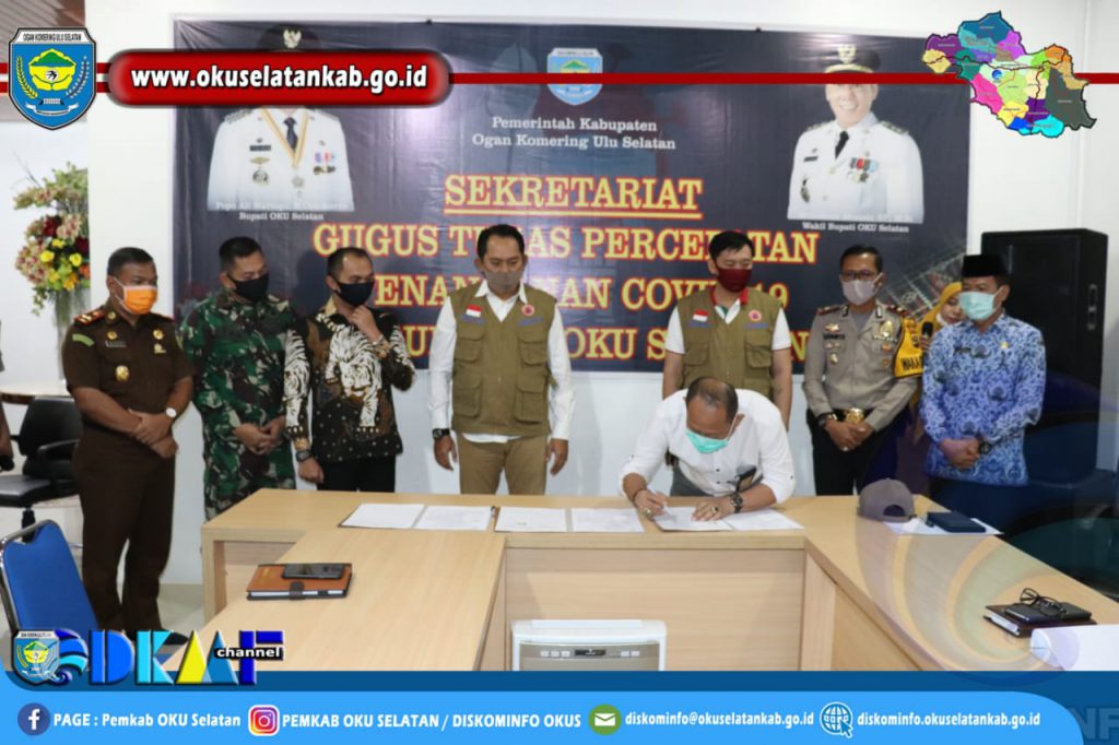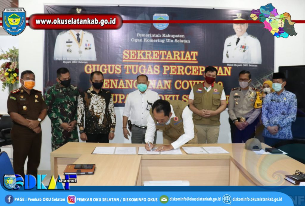 BUPATI OKU SELATAN PIMPIN RAKOR TERKAIT PENCEGAHAN DAN PENANGANAN COVID-19 DI KAB OKU SELATAN.  PEMKAB OKU SELATAN BERSAMA BULOG TANDATANGANI KESEPAKATAN. KETUA KORPRI KAB OKU SELATAN BERIKAN BANTUAN 50 JUTA MELALUI GUGUS TUGAS UNTUK PENANGGULANGAN DAMPAK COVID-19 DI KAB OKU SELATAN