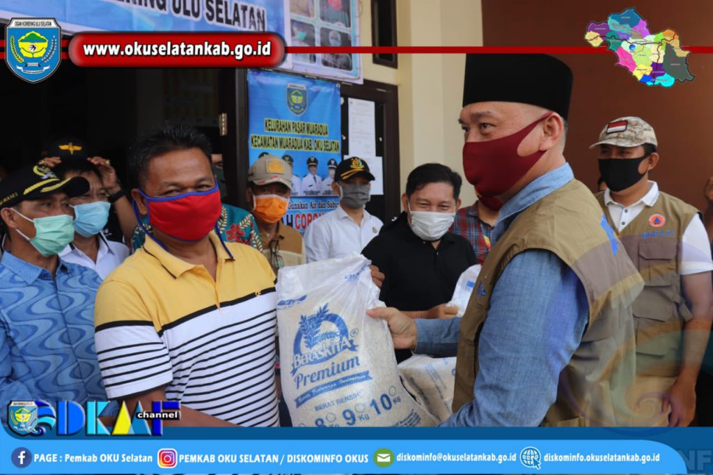 Bupati OKU Selatan beserta rombongan menyerahkan Bantuan Beras kepada 14 Kepala lingkungan secara Simbolis Se-Kelurahan Pasar Muaradua untuk di bagikan ke masyarakat yang membutuhkan akibat dampak mewabahnya Covid-19, dan hasil Pendataan Kartu Keluarga (KK) yang sudah terkumpul di Kelurahan Pasar Muaradua berjumlah 2176 KK yang akan di bagikan bantuan berupa Beras 10 Kg untuk Satu KK. Untuk jumlah Beras yang akan dibagikan ke Masyarakat khususnya untuk di Wilayah Kecamatan Muaradua hari ini berjumlah 74.550 Kg.