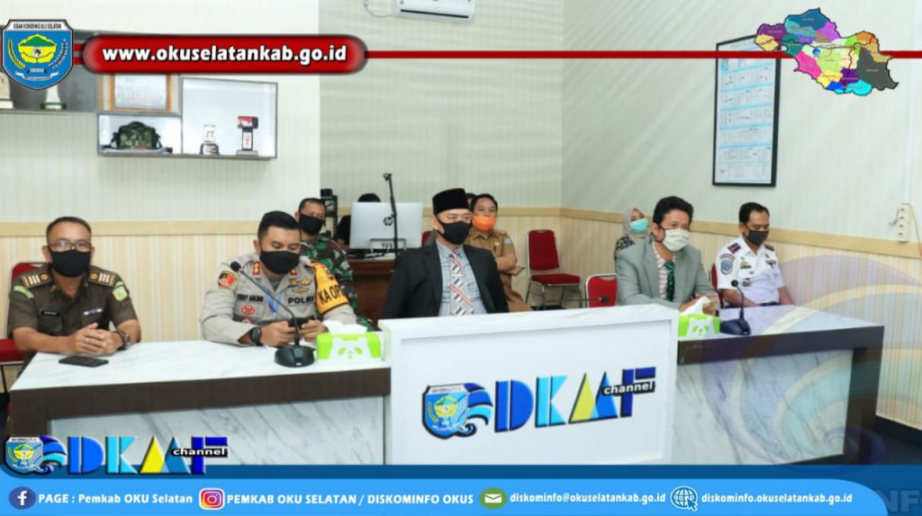 Bertempat di Ruang Vidcon Dinas Kominfo Kabupaten OKU Selatan, turut hadir mendampingi Wakil Bupati OKU Selatan diantaranya Kapolres OKU Selatan AKBP. Deny Agung Andriana, S.I.K., Kepala Kejaksaan Negeri OKU Selatan Edi Irsan Kurniawan, S.H.,M.Hum. Perwira Penghubung Kodim 0403 OKU, Anggota DPRD, Kepala Dinas Kominfo, dan Kepala Dinas Perhubungan Kabupaten OKU Selatan.