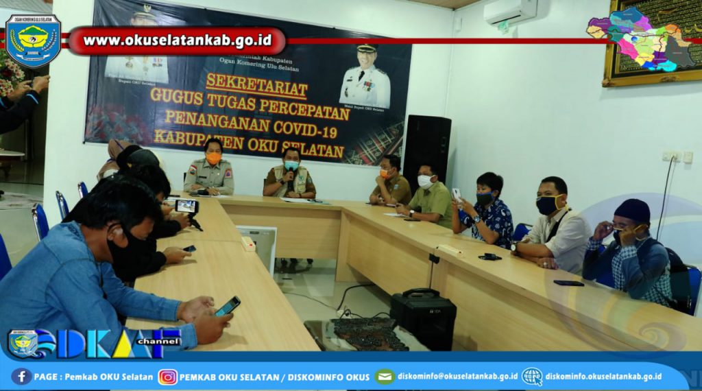 GUGUS TUGAS COVID-19 KABUPATEN OKU SELATAN GELAR PRESS RELEASE TERKAIT PERKEMBANGAN COVID-19 DI KAB. OKU SELATAN, MESKI ZONA HIJAU GUGUS TUGAS HARAPKAN MASYARAKAT OKU SELATAN SELALU PAKAI MASKER DAN JAGA JARAK