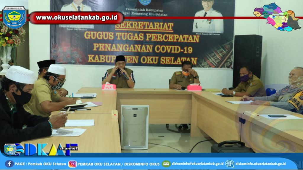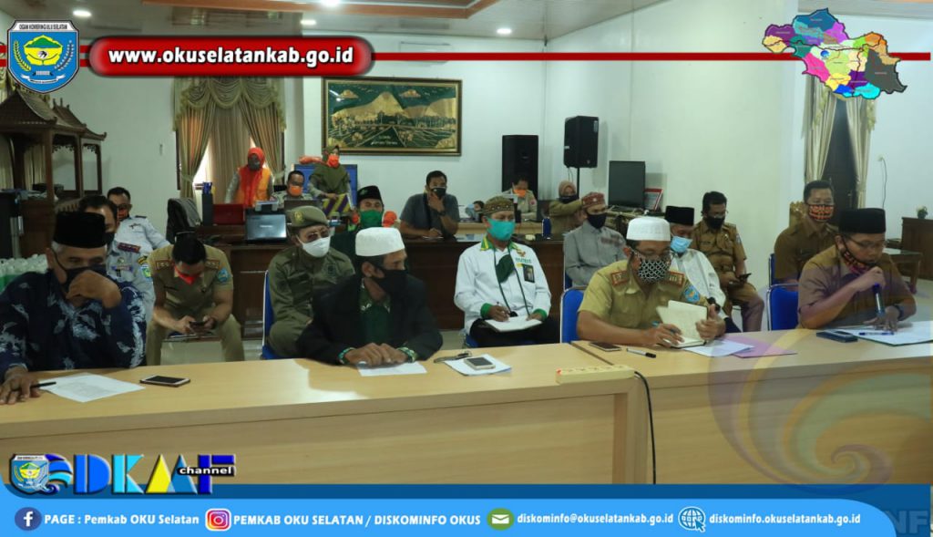 Bertempat di Sekretariat Gugus Tugas Percepatan Penanganan Covid-19 Kabupaten OKU Selatan (Guest House) turut mendampingi Wakil Bupati OKU Selatan Sekertaris Daerah H. Romzi, S.E.,M.Si., Kemenag, Asisten I, Para Kepala OPD, Ketua Muhammadiyah, Ketua MUI, Ketua LDII, Ketua Porpes, Sekretaris Gugus Tugas, Pengurus Masjid Agung Al Muhtadin, Pengurus Masjid Al Falah Muaradua, Ketua Baznas dan undangan lainnya.