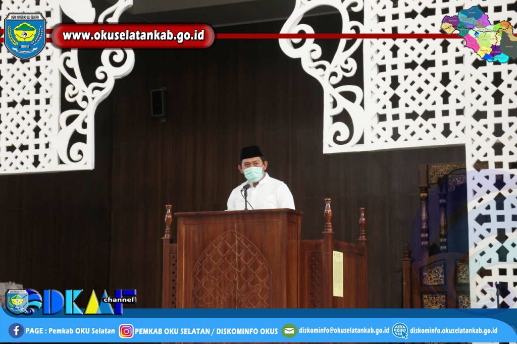 TERAPKAN PROTOKOL KESEHATAN, BUPATI OKU SELATAN LAKSANAKAN SHALAT IDUL ADHA DI MASJID AGUNG AL-MUHTADIN