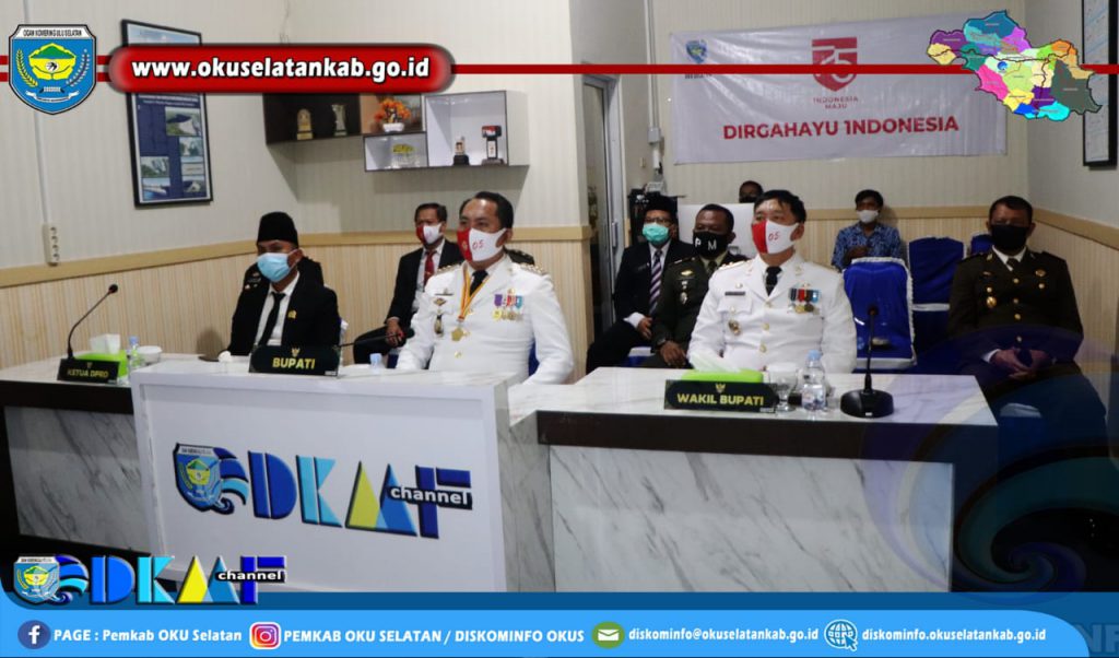 BUPATI DAN WAKIL BUPATI OKU SELATAN IKUTI DETIK- DETIK PERINGATAN HUT RI KE-75 SECARA VIRTUAL