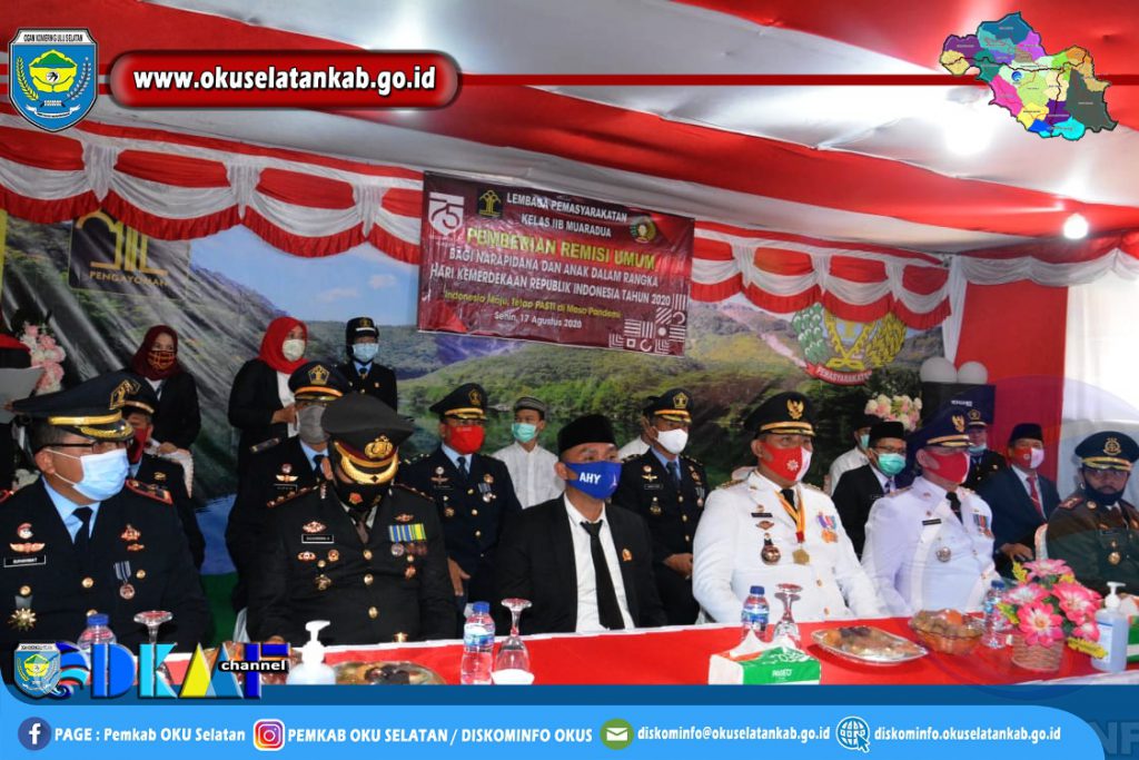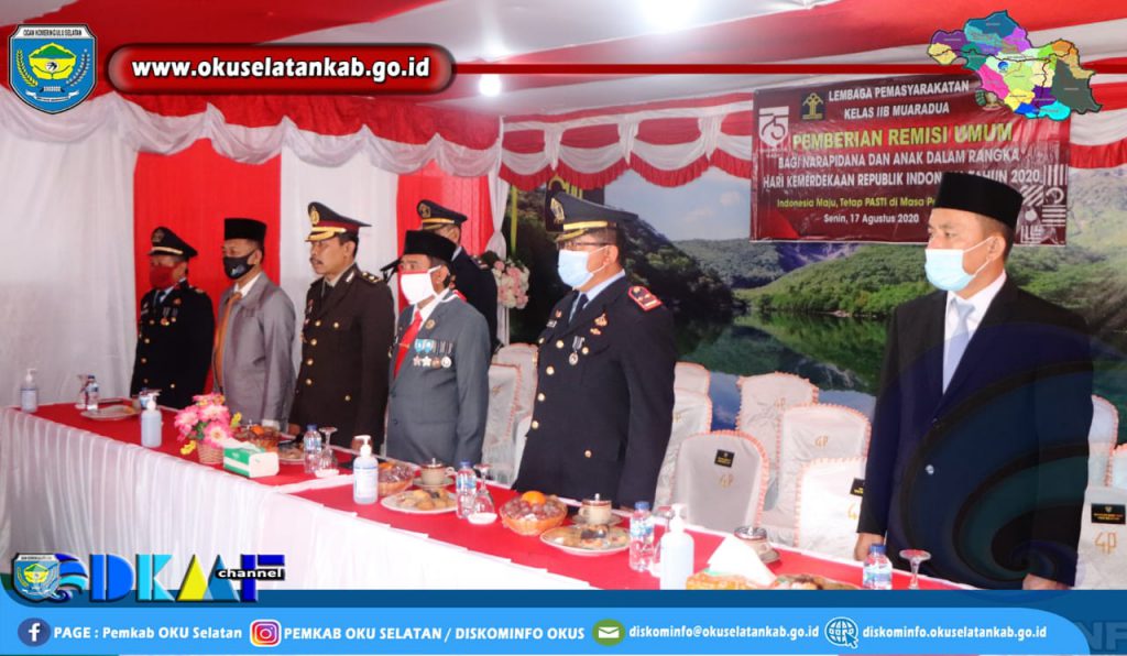 Muaradua (17/08) Bupati OKU Selatan Popo Ali M.,B.Com. dan Wakil Bupati OKU Selatan Sholehien Abuasir,SP.,M.Si. hadiri Pemberian Remisi Umum Bagi Narapidana dan Anak Hari Kemerdekaan RI Ke 75 Tahun 2020, Senin (17/08/2020).