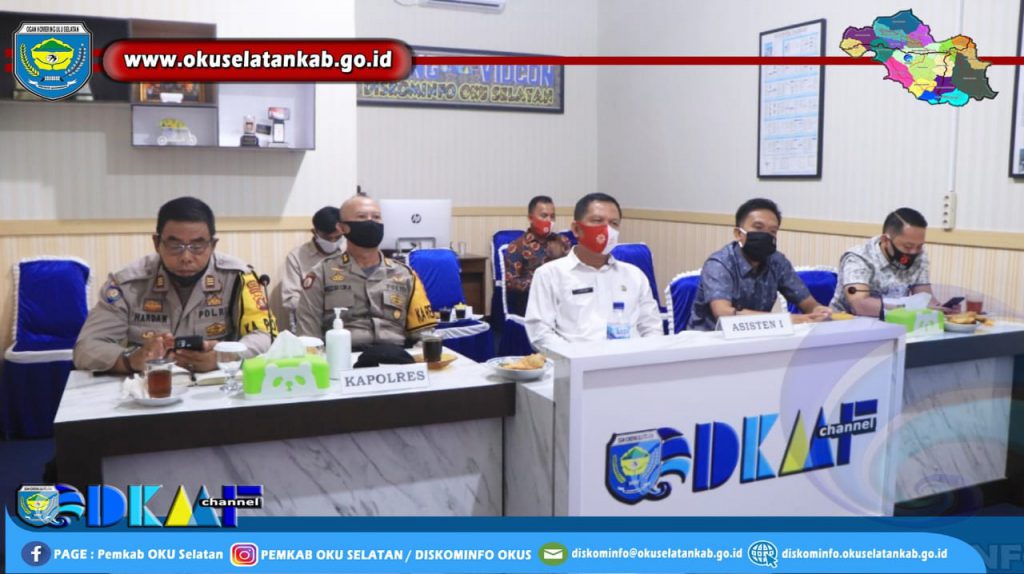 Bertempat di Ruang Video Conference Diskominfo OKU Selatan, turut hadir dalam rapat ini Forkopimda/Mewakili, Kepala Dinas Satpol-PP, Ketua Bawaslu, Ketua KPU serta undangan lainnya.