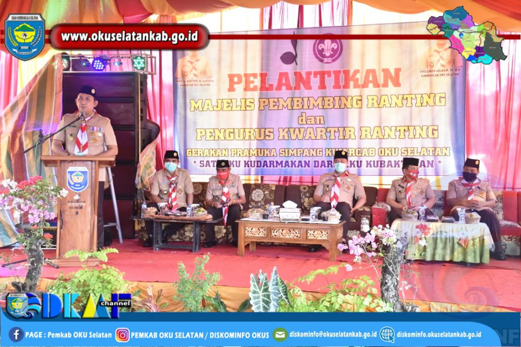 BUPATI DAN WAKIL BUPATI OKU SELATAN MELANTIK SECARA LANGSUNG PENGURUS MAJELIS PEMBIMBING RANTING DAN KWARTIR RANTING GERAKAN PRAMUKA KECAMATAN SIMPANG MARTAPURA DAN KECAMATAN BUANA PEMACA