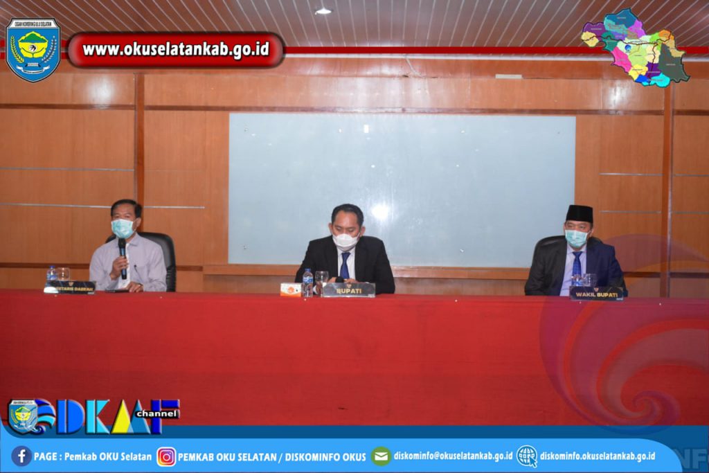 Muaradua (21/09) Menjelang cuti sebagai Kepala Daerah Bupati OKU Selatan Popo Ali M.,B.Com., dan Wakil Bupati OKU Selatan Sholehien Abuasir,SP.,M.Si., gelar Rapat Koordinasi bersama Sekretaris Daerah dan Seluruh Kepala Organisasi Prangkat Daerah (OPD) serta para Camat di Kabupaten OKU Selatan. Senin (21/09/2020).
