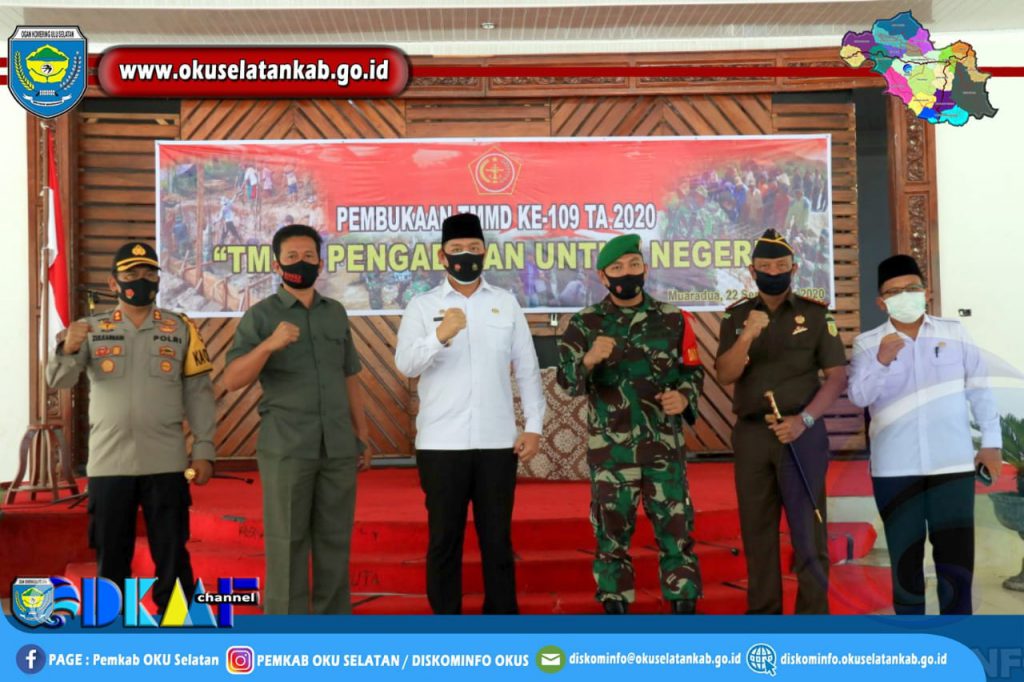 Muaradua (22/09) Wakil Bupati OKU Selatan Sholehien Abuasir,SP.,M.Si., buka Secara Resmi Kegiatan TNI Manunggal Membangun Desa (TMMD) Ke 109 Tahun Anggaran 2020 di Desa Simpang Pancur dan Desa Pagar Agung Pulau Beringin. Selasa (22/09/2020).