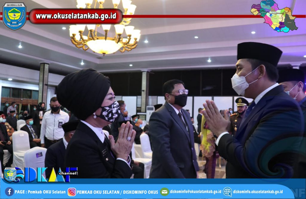 Bupati OKU Selatan dan Wakil Bupati OKU Selatan yang cuti kampanye, berbincang dan memperkenalkan Ketua DPRD OKU Selatan, Kapolres, Kajari, Dandim dan Para Kepala OPD Pemkab OKU Selatan kepada Pjs Bupati OKU Selatan saat sebelum berlangsungnya pelantikan Lima Pjs Bupati.