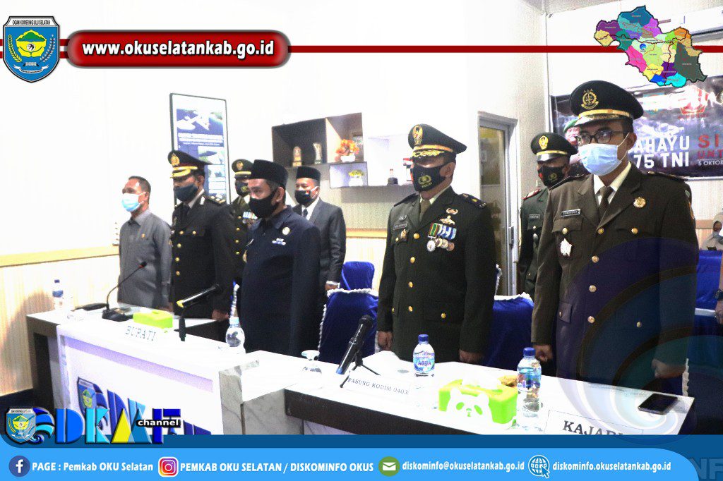 PEMKAB OKU SELATAN, DPRD, DAN FORKOPIMDA OKU SELATAN IKUTI UPACARA HUT TNI KE 75 SECARA VIRTUAL