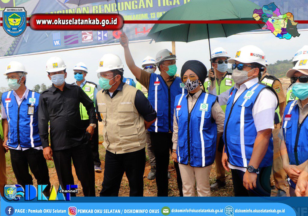 GUBERNUR SUM-SEL TINJAU PEMBANGUNAN BENDUNGAN TIGA DIHAJI BERSAMA PJS. BUPATI OKU SELATAN.