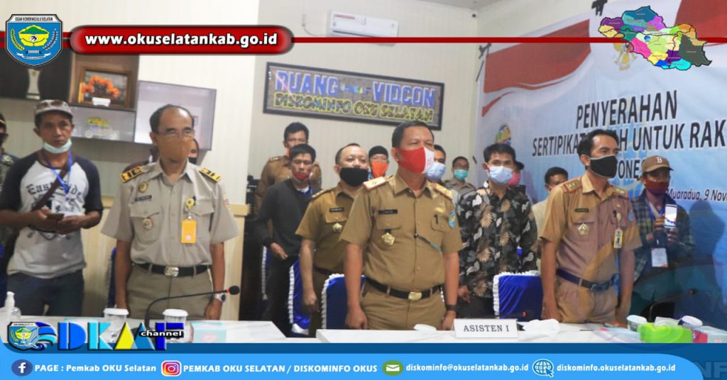 Muaradua (09/11) Asisten I Bidang Pemerintahan dan Kesra Joni Rafles, AP.,M.Si. Ikuti virtual penyerahan sertifikat tanah oleh Presiden RI Joko Widodo dari Istana Kepresidenan Jakarta, Senin (9/11/2020).