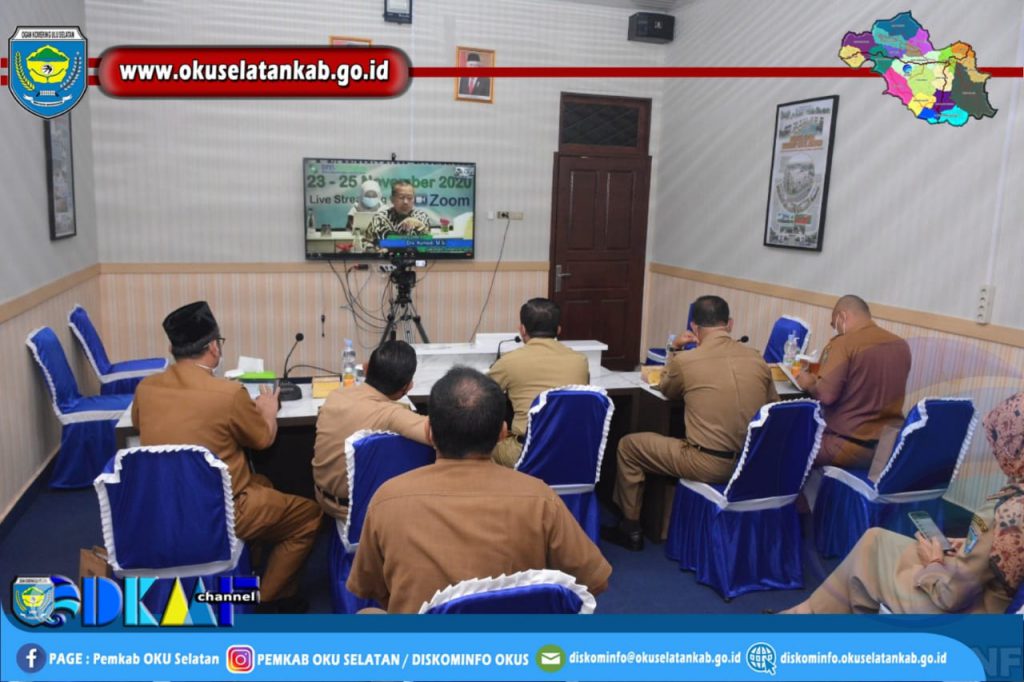 Bertempat di Ruang Zoom Meeting Diskominfo OKU Selatan, turuh hadir dalam kesempatan ini Asisten III Bidang Administrasi Umum Drs. Herman Azedi, SKM.,M.M., BPKAD, BKPSDM, Bappeda Litbang, Dinas Pendidikan dan Dinas Kesehatan serta undangan lainnya.