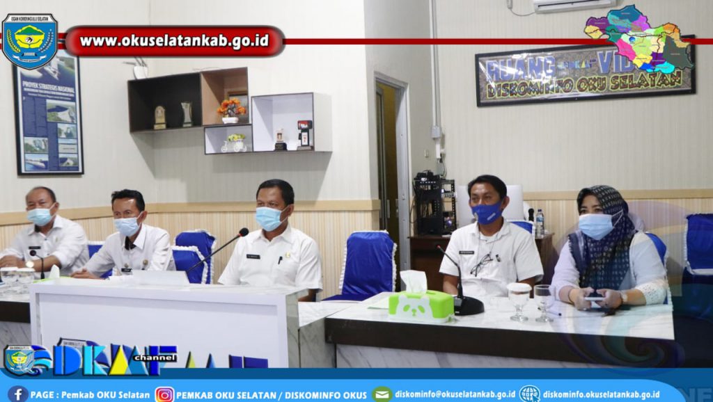 Bertempat di Ruang Video Conference Diskominfo OKU Selatan, turut mendampingi BPKAD, Kepala Bappenda, Kepala DPMPD serta undangan lainnya.