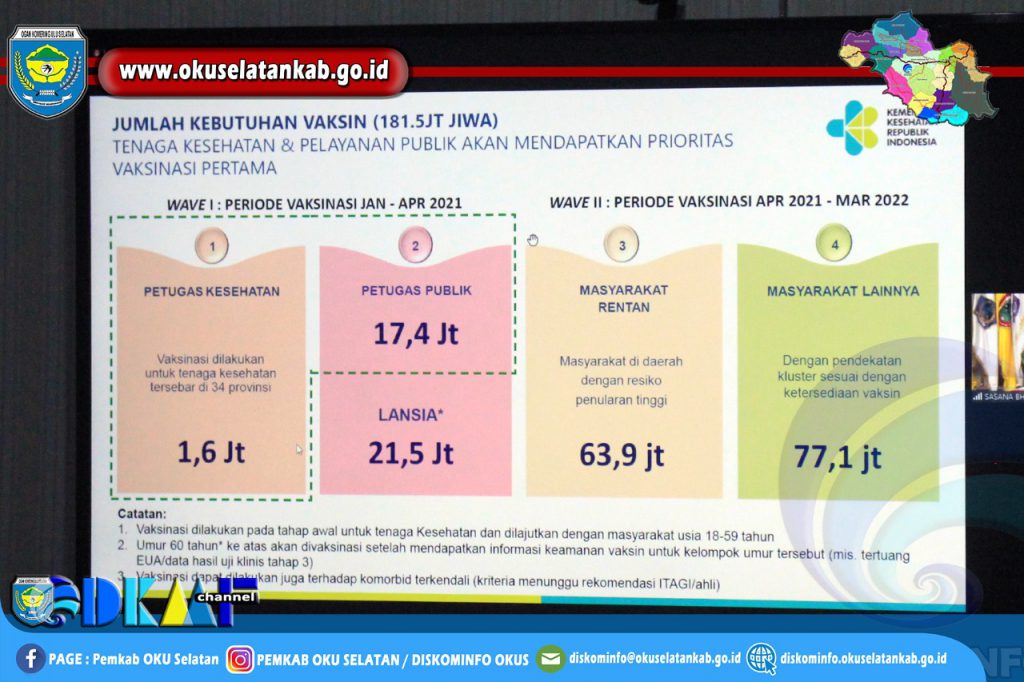 Terkait vaksinasi dan penerapan protokol kesehatan ini, Bupati OKU Selatan, Popo Ali Martopo akan segera menggelar koordinasi dengan berbagai pihak untuk menentukan siapa yang akan divaksinasi perdana di OKU Selatan selain tenaga kesehatan. Hal ini, kata bupati, untuk memberikan contoh kepada masyarakat dan untuk membangun kepercayaan kepada masyarakat tentang vaksin.