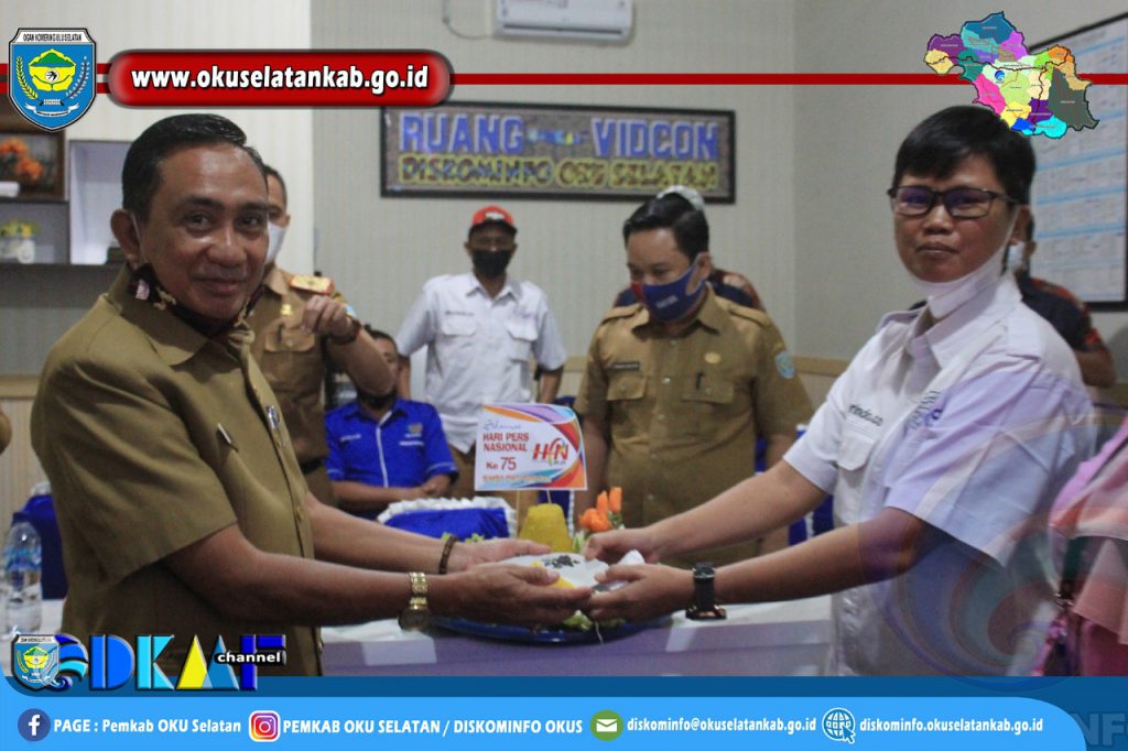 Sebagai wujud syukur wartawan yang biasa bertugas di Kabupaten OKU Selatan, Usai mengikuti Peringatan HPN Ke-75 Tahun 2021 Asisten III Bidang Administrasi Umum laksanakan Potong Tumpeng bersama Para Insan Pers Kabupaten OKU Selatan.