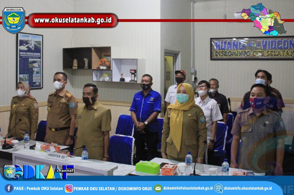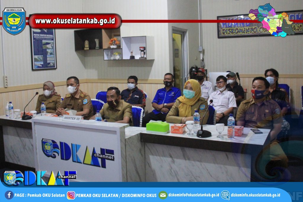 Bertempat di Ruang Video Conference Dinas Komunikasi dan Informatika Kabupaten OKU Selatan, hadir dalam kesempatan ini mendampingi Asisten III, Kepala Dinas Komunikasi dan Informatika Kabupaten OKU Selatan Firman Bastari, S.STP.,M.Si. Kepala Dinas Pendidikan Kabupaten OKU Selatan Zulfakar Dhani, S.Sos. Kepala BKPSDM Kabupaten OKU Selatan Eva Nirwana, S.IP.,M.Si. dan Kepala Dinas Kesehatan Kabupaten OKU Selatan dr.Mery Astuti.