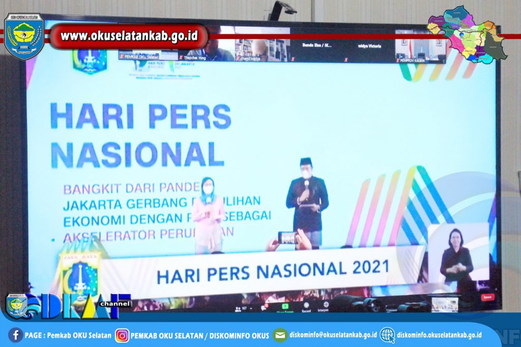 Muaradua (09/02) Mewakili Bupati OKU Selatan Popo Ali.,M.B.Com. Asisten III Bidang Administrasi Umum Setda Kabupaten OKU Selatan Drs. H. Herman Azedi, SKM.,M.M. ikuti Peringatan Hari Pers Nasional (HPN) Ke-75 Tahun 2021 melalui Video Conference, Selasa (09/02/2021). Peringatan Hari Pers Nasional yang diperingati setiap tanggal 09 Februari, pada tahun 2021 ini digelar secara virtual.