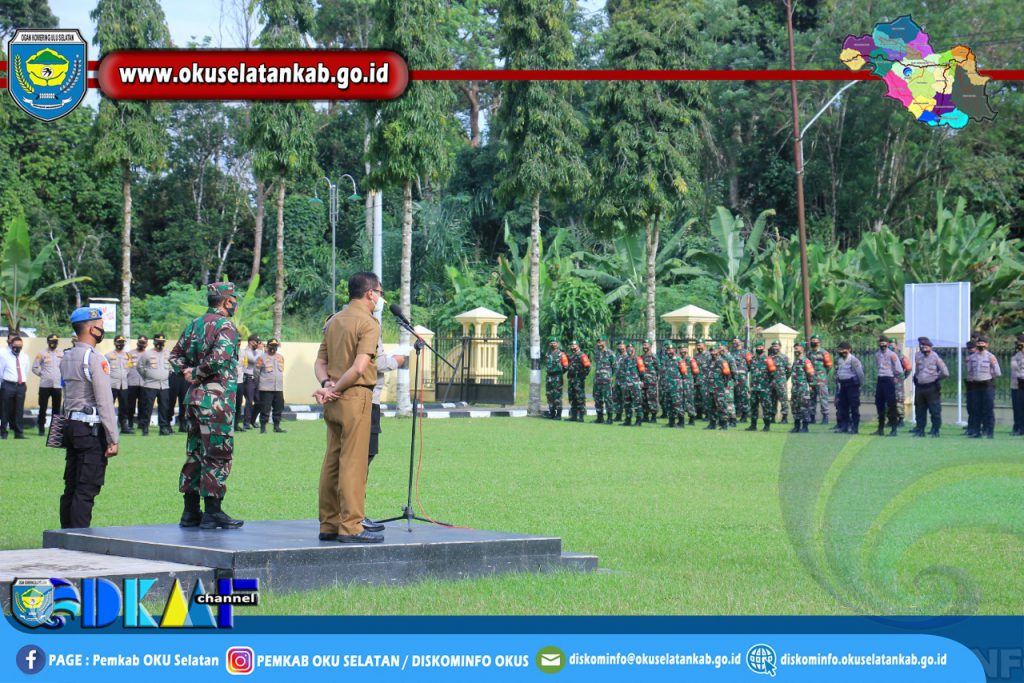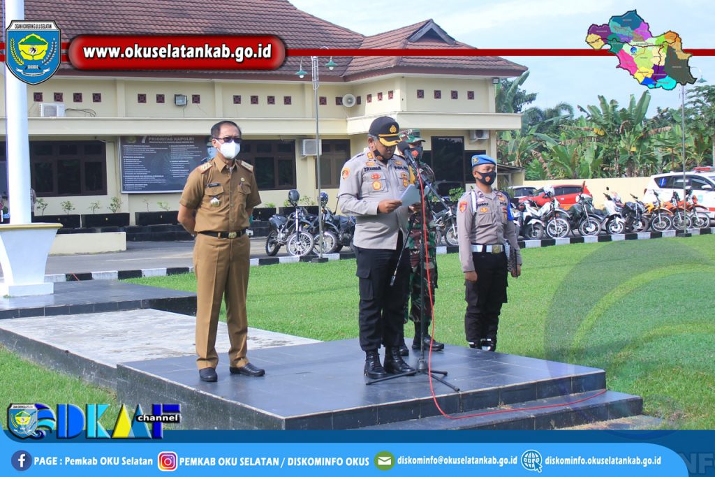 PLH BUPATI OKU SELATAN HADIRI APEL KESIAPAN HADAPI KERHUTLA DAN BENCANA DI MAPOLRES OKU SELATAN