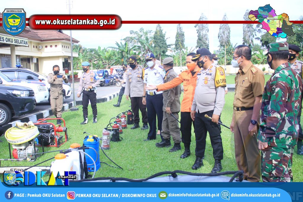 Dalam kesempatan itu, tampak Plh Bupati beserta jajaran didampingi Kapolres OKU Selatan dan perwakilan Kodim OKU mengecek kesiapan sarana dan prasarana yang akan digunakan dalam menghadapi karhutla dan bencana alam.