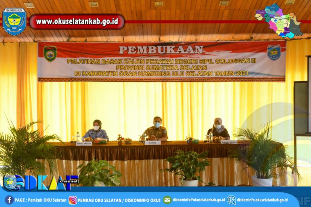 Muaradua (27/05) Pemerintah Kabupaten OKU Selatan melalui Badan Kepegawaian dan Pengembangan Sumber Daya Manusia menggelar Pelatihan Dasar CPNS Golongan III Angkatan Ke- 37, 38 dan 41 Provinsi Sumatera Selatan di Kabupaten OKU Selatan Tahun 2021.