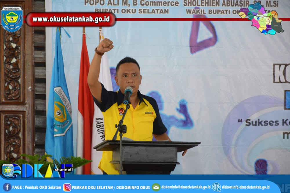 Dalam Sambutan Ketua KONI Kabupaten OKU Selatan Windya Alhadipuro, S.E menyampaikan kegiatan penyelenggaraan Rapat Kerja Kabupaten (RAKERKAB) Komite Olahraga Nasional Indonesia (KONI) Kabupaten OKU Selatan dengan tema “Sukses Kelembagaan dan Pembinaan Prestasi Olahraga Kabupaten OKU Selatan Menuju Porprov Ke XIII Provinsi Sumatera Selatan Tahun 2021”.