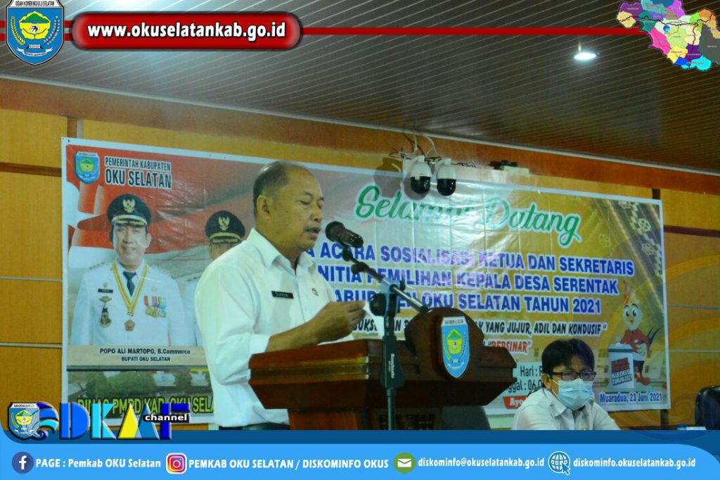 DINAS PMPD GELAR SOSIALISASI TAHAPAN PEMILIHAN KEPALA DESA SERENTAK KABUPATEN OKU SELATAN TAHUN 2021