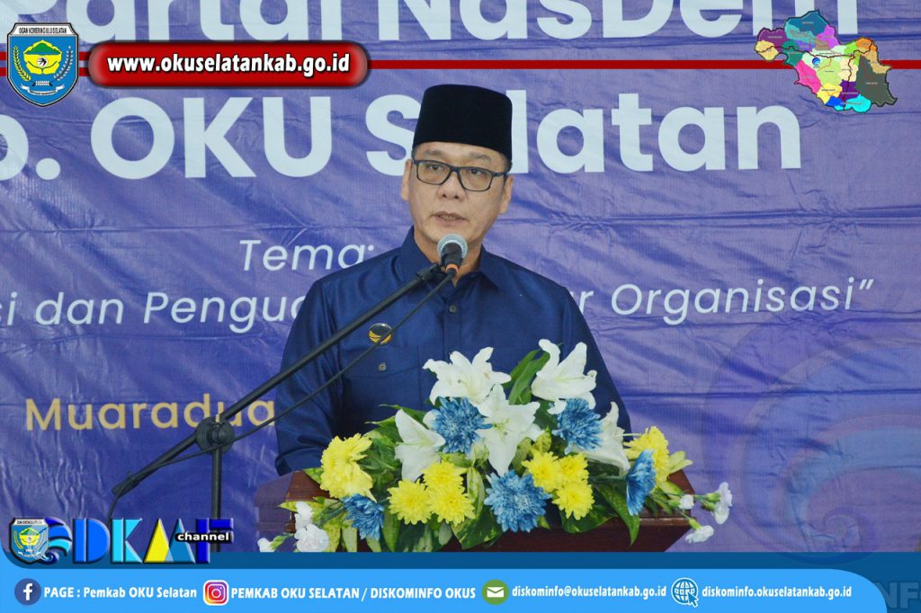 Mari kita ciptakan kebersamaan, dalam visi di butuhkan solidaritas bersama, mitra- mitra Nasdem di Kabupaten OKU Selatan, Nasdem ini bisa menerima dan di terima, ini menandakan bahwa partai kita dapat di terima oleh masyarakat  dapat di buktikan dengan kinerja pengurus partai nasdem, Langkah langkah kita tentu berbeda degan partai lain terus pertahankan secara eksternal. Maka dari itu saya berharap bekerjalah dengan hati nurani sehingga hasilnya bisa dirasakan oleh masyarakat semua.