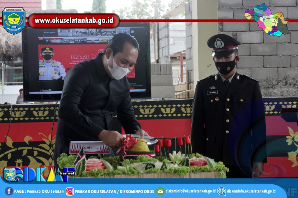 HUT BHAYANGKARA KE-75, BUPATI DAN WAKAPOLRES OKU SELATAN POTONG TUMPENG BERSAMA