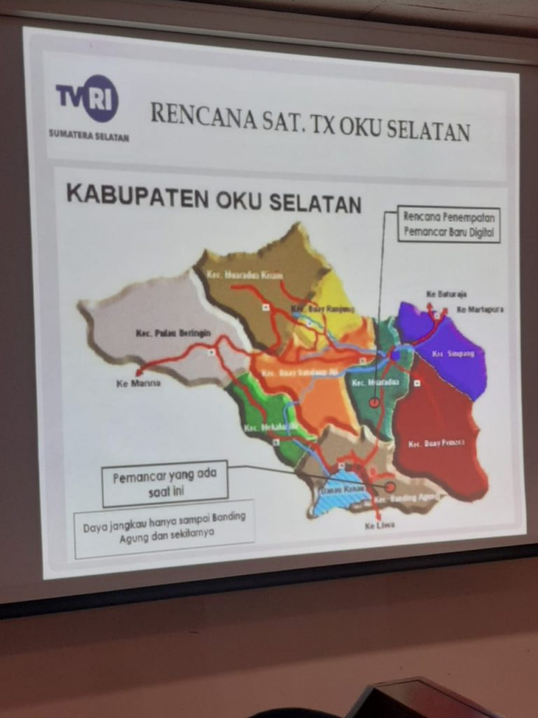 Bupati OKU Selatan Popo Ali M.,B.Com dalam sambutannya menyampaikan memberikan dukungan dan Suport kepada Tim TVRI Sumsel, guna terwujudnya Pembangunan Stasiun Pemancar berbasis Digital di OKU Selatan. Bupati Popo berharap kegitan Pembangunan Pemancar Digital segera terlaksana sehingga memberikan dampak positif bagi daerah khususnya dalam mempromosikan produk unggulan maupun obyek wisata dengan cakupan lebih luas di Kabupaten OKU Selatan.